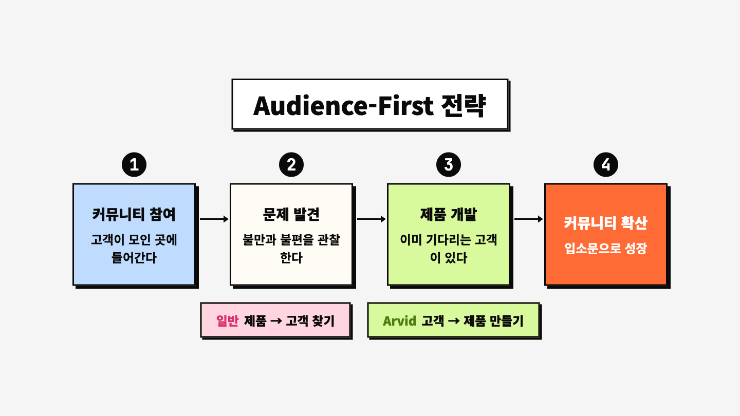 대부분의 개발자는 제품을 먼저 만들고 마케팅을 고민합니다. Arvid는 반대로 합니다. 타겟 고객의 커뮤니티에 먼저 들어가고, 그들의 대화를 듣고, 그다음에 만듭니다.