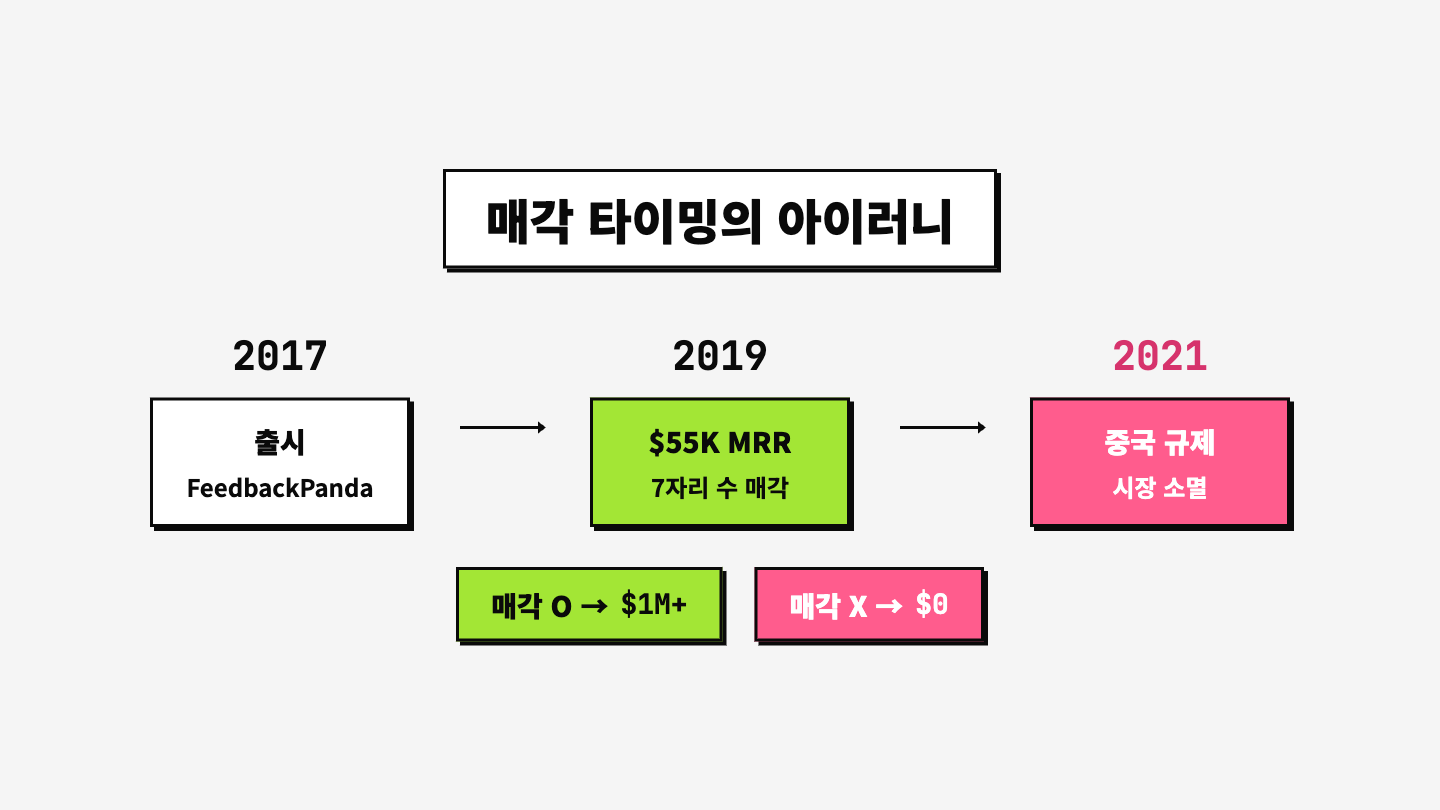 | FeedbackPanda | 2017~2019 | $55K MRR, SureSwift 매각 | 매각 |
