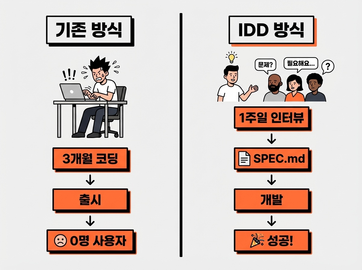 Interview Driven Development(IDD)란 제품 개발의 출발점을 코드가 아니라 인터뷰에 두는 방법론입니다.
