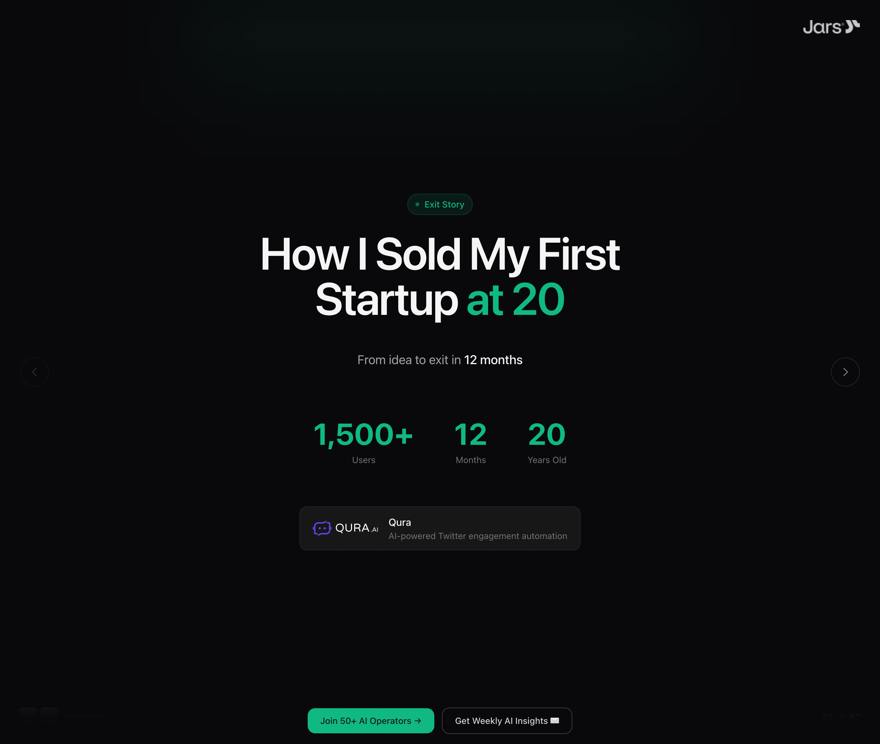 - Qura exit 페이지: How I Sold My First Startup at 20