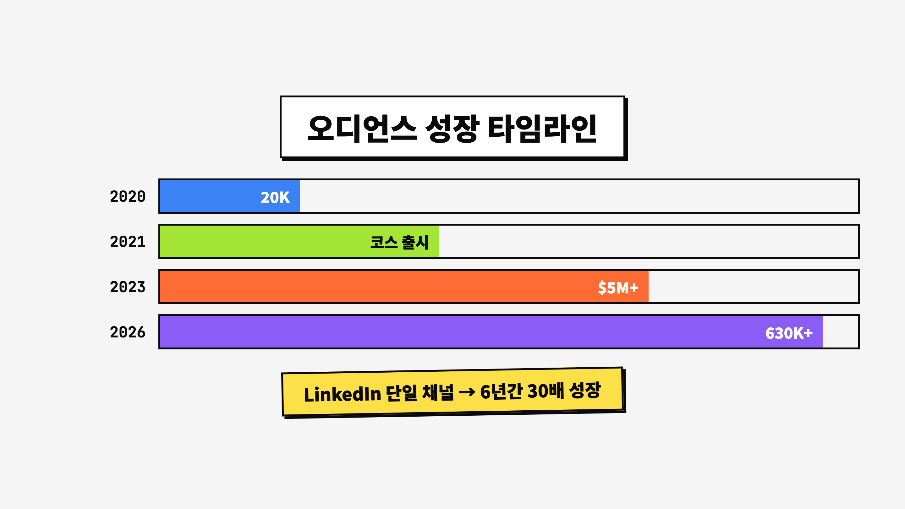 | 2026년 3월 | LinkedIn 836K 팔로워, 뉴스레터 175K+ 독자, 공개 프로필 기준 누적 $12.5M+ |
