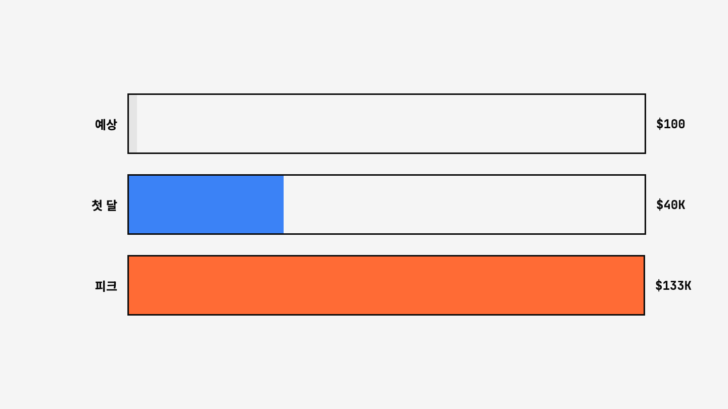 제품과 마케팅이 동시에 준비되어 있었기 때문에 첫 달 $40K가 나왔습니다.