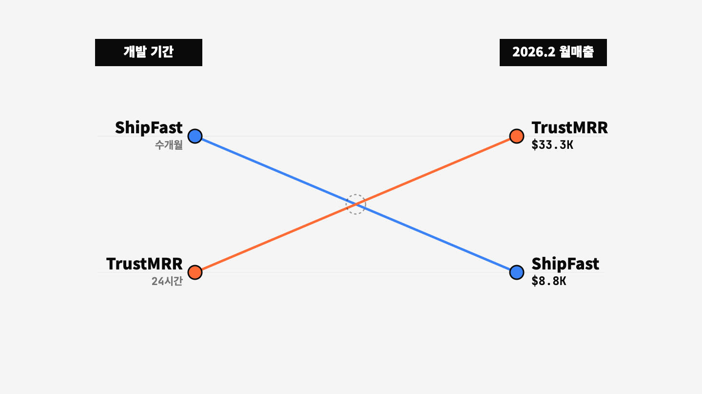 TrustMRR는 48시간 만에 MRR $13,883을 만들었고, 몇 달 뒤에는 ShipFast의 월매출을 넘어섰습니다.