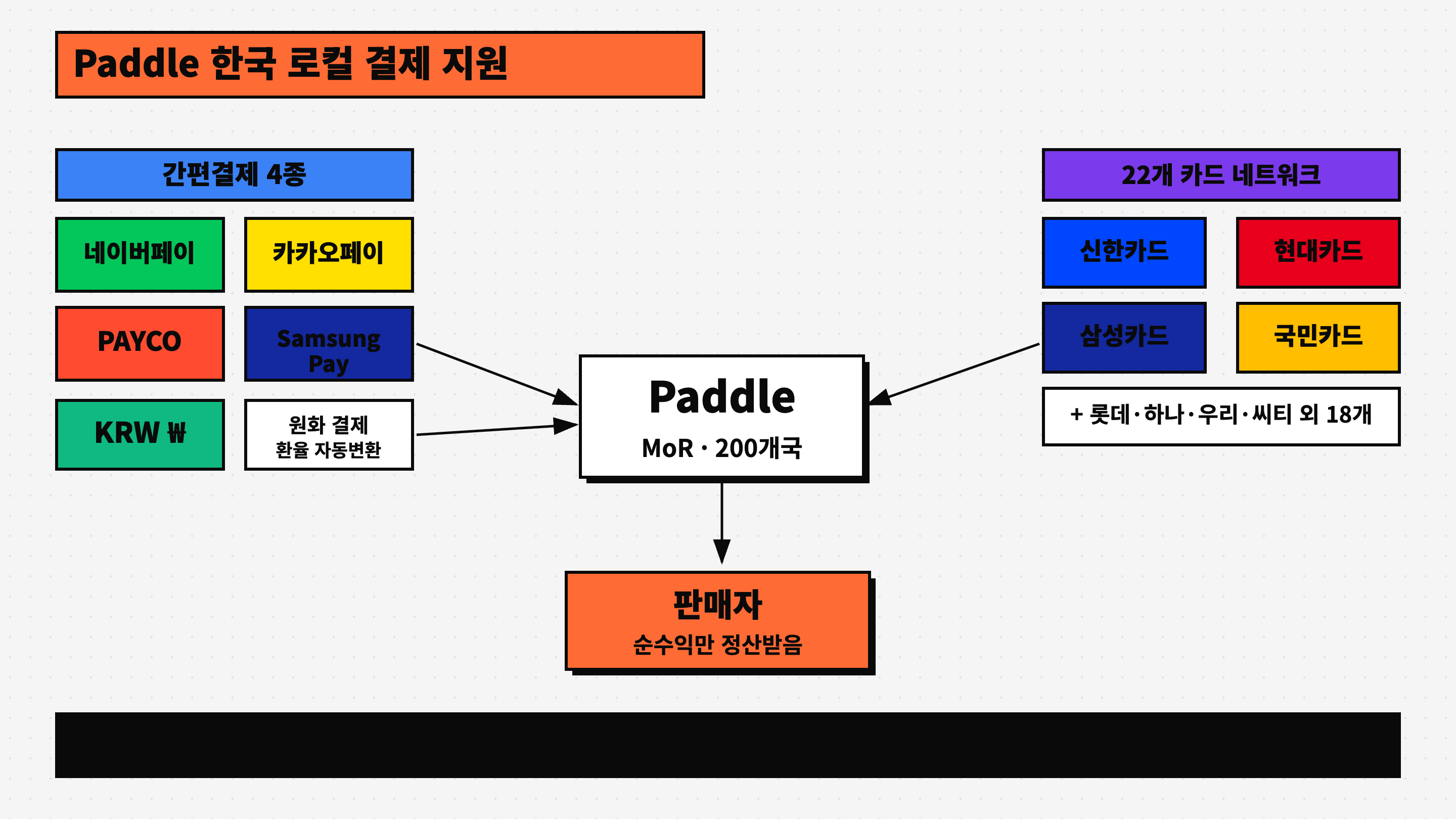 Paddle은 한국 로컬 결제를 공식 지원한다: 네이버페이, 카카오페이, PAYCO, Samsung Pay, 그리고 22개 한국 카드사.